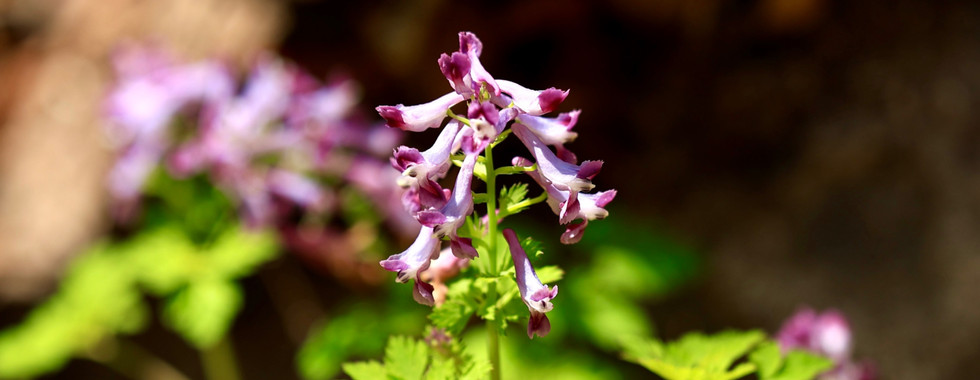 もみじ台に上がる階段脇のクマガイソウは、新芽が育ってきています。花が咲くまではもう少々お待ちください。
